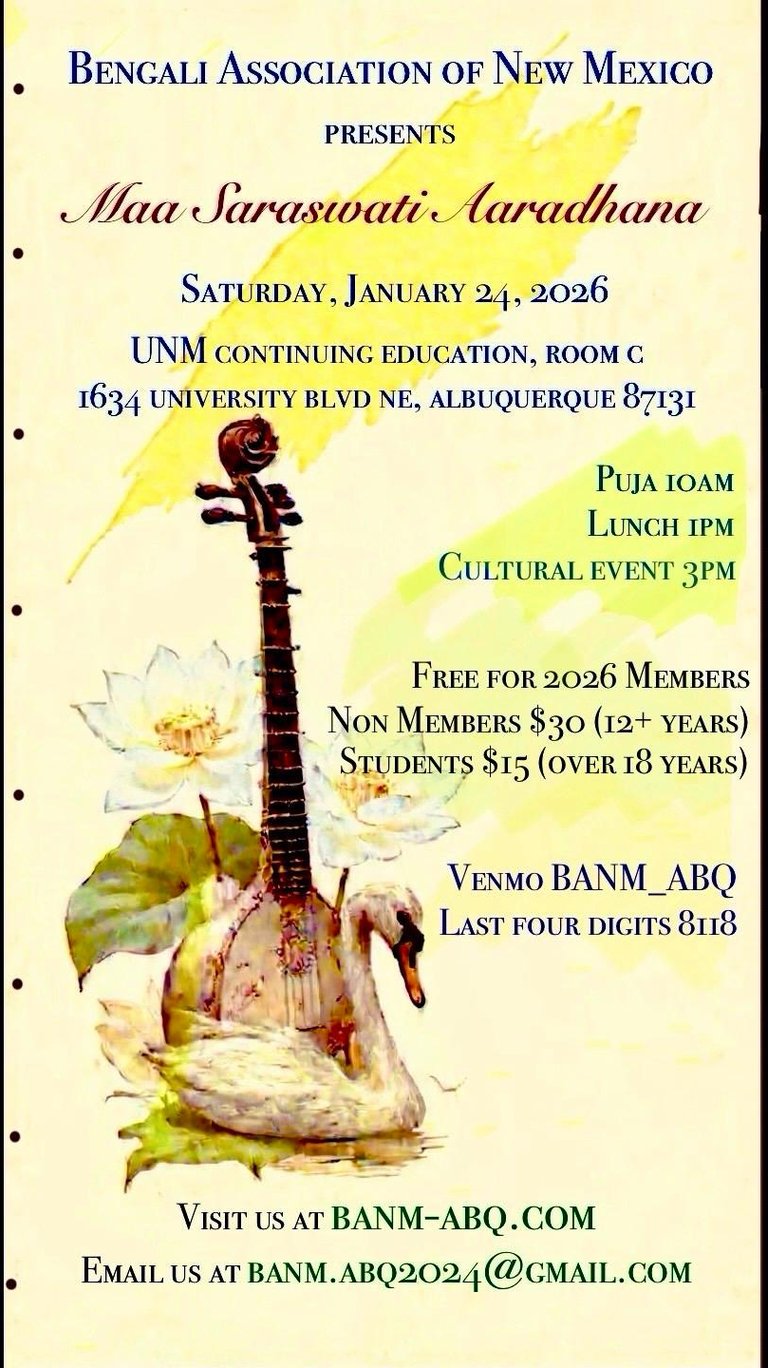 Payment options for general entry ticket and/or dinner: Venmo (BANM_Abq / Last four digits of phone: 8118)